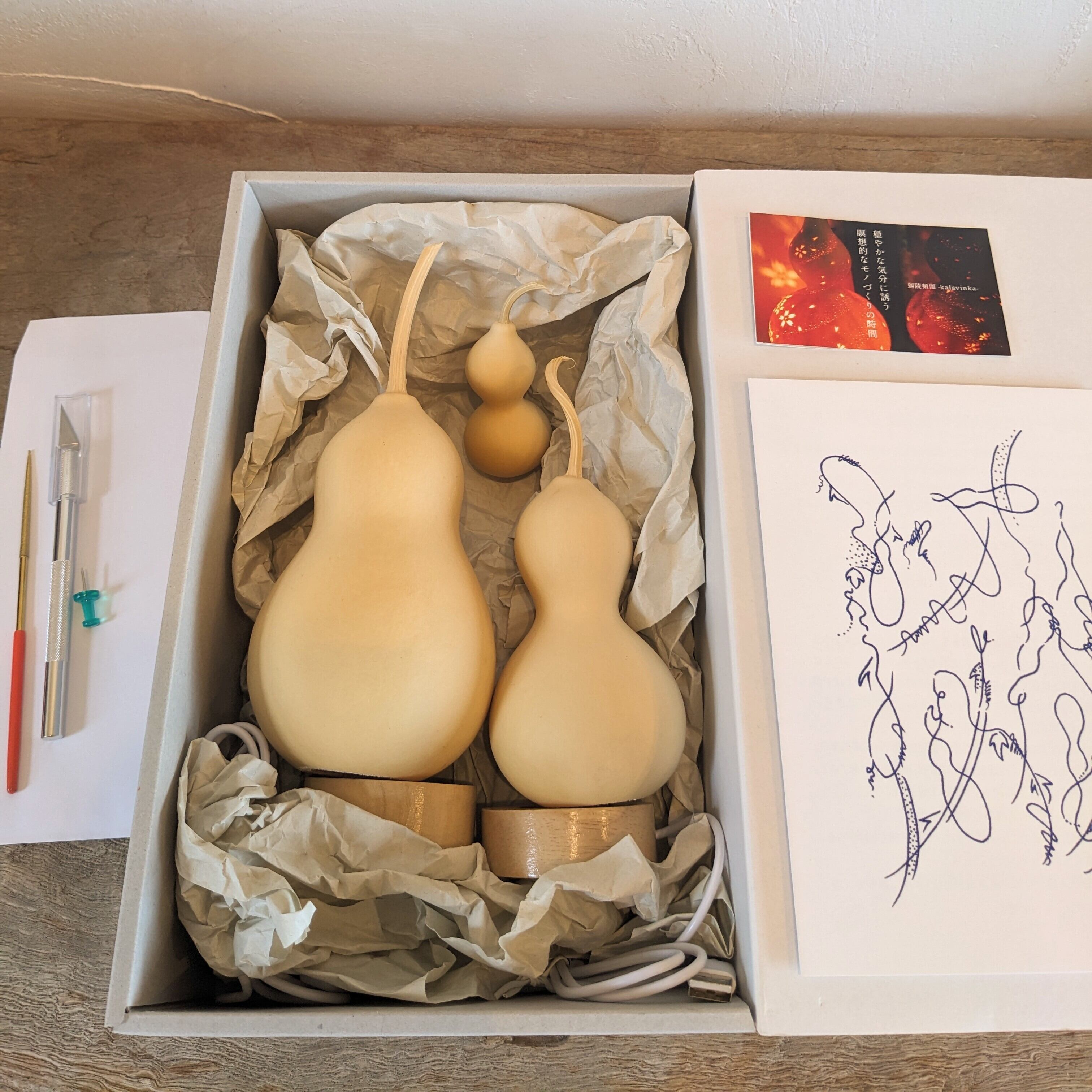 糸島二見ヶ浦で栽培されたオーガニックひょうたんを使ったランプ作り。