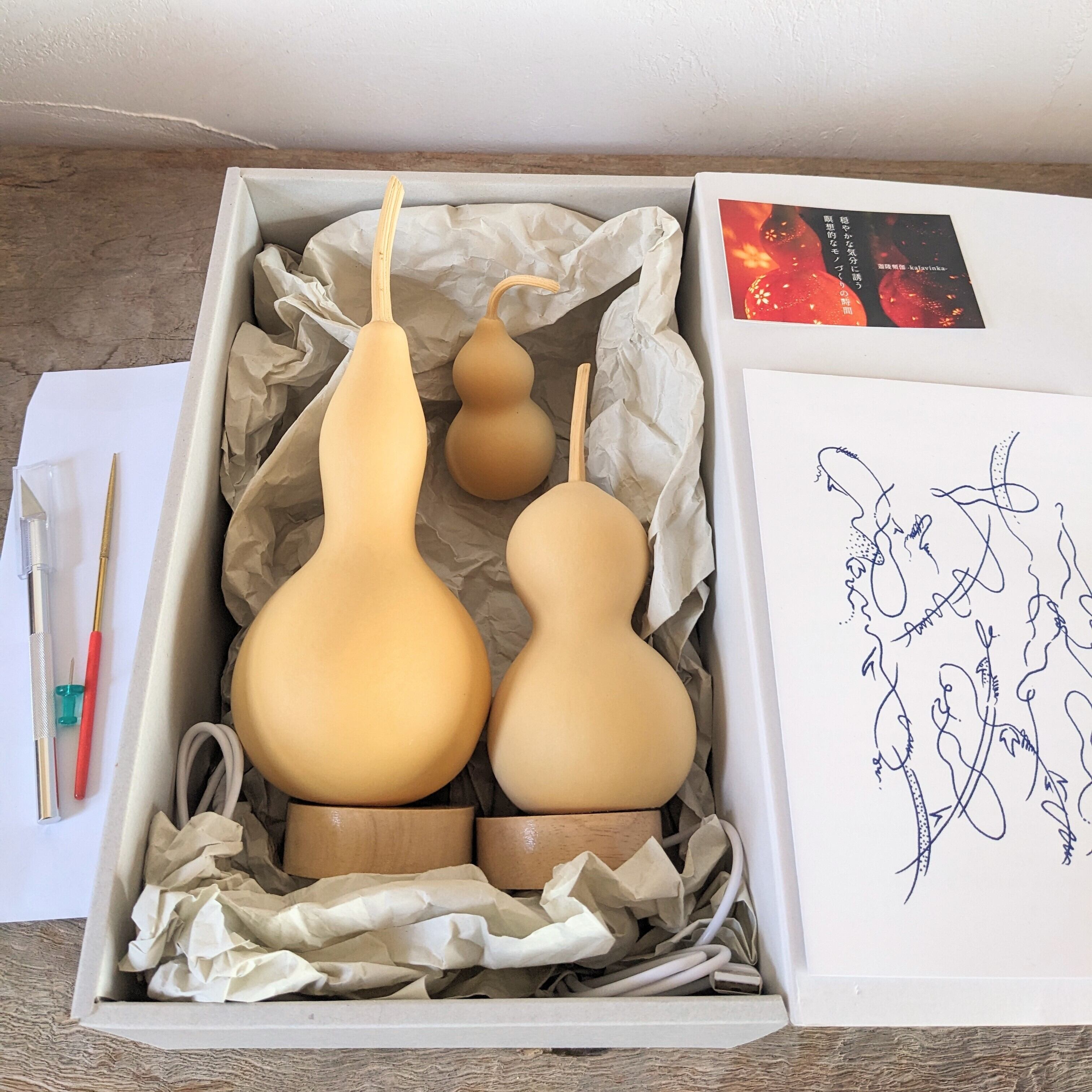 糸島二見ヶ浦で栽培されたオーガニックひょうたんを使ったランプ作り。