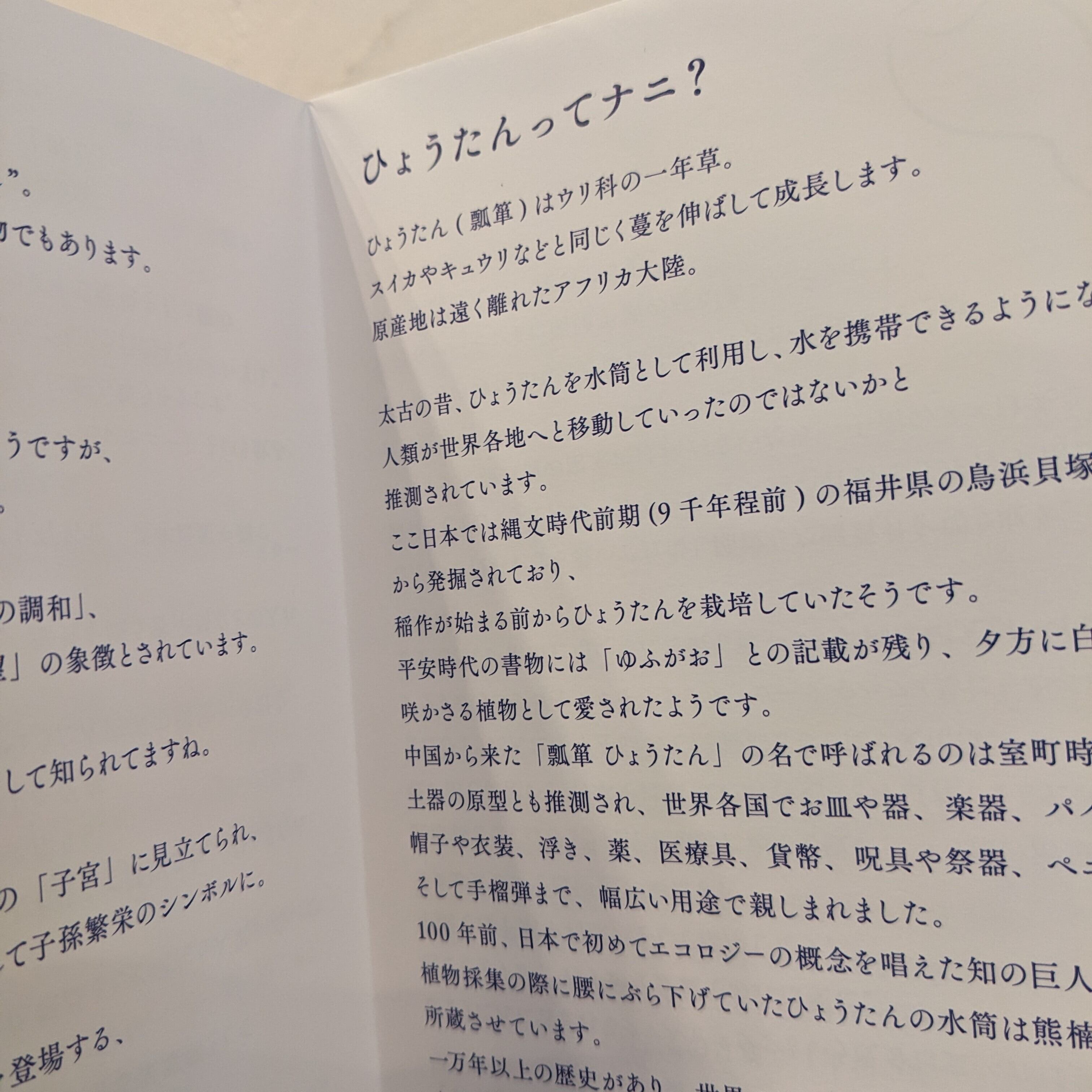 □ひょうたんの歴史/文化などを解説した冊子付き